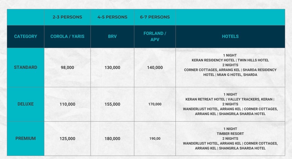 This tour covers all major attractions including Keran, Upper Neelum, Sharda, Kel, and the heavenly Arang Kel. With years of experience, North Voyagers has earned the reputation of being the Most Trusted Travel Agency in Lahore and an Experienced Tour Operator in Lahore by offering affordable packages, professional drivers, and well-planned guided tours.